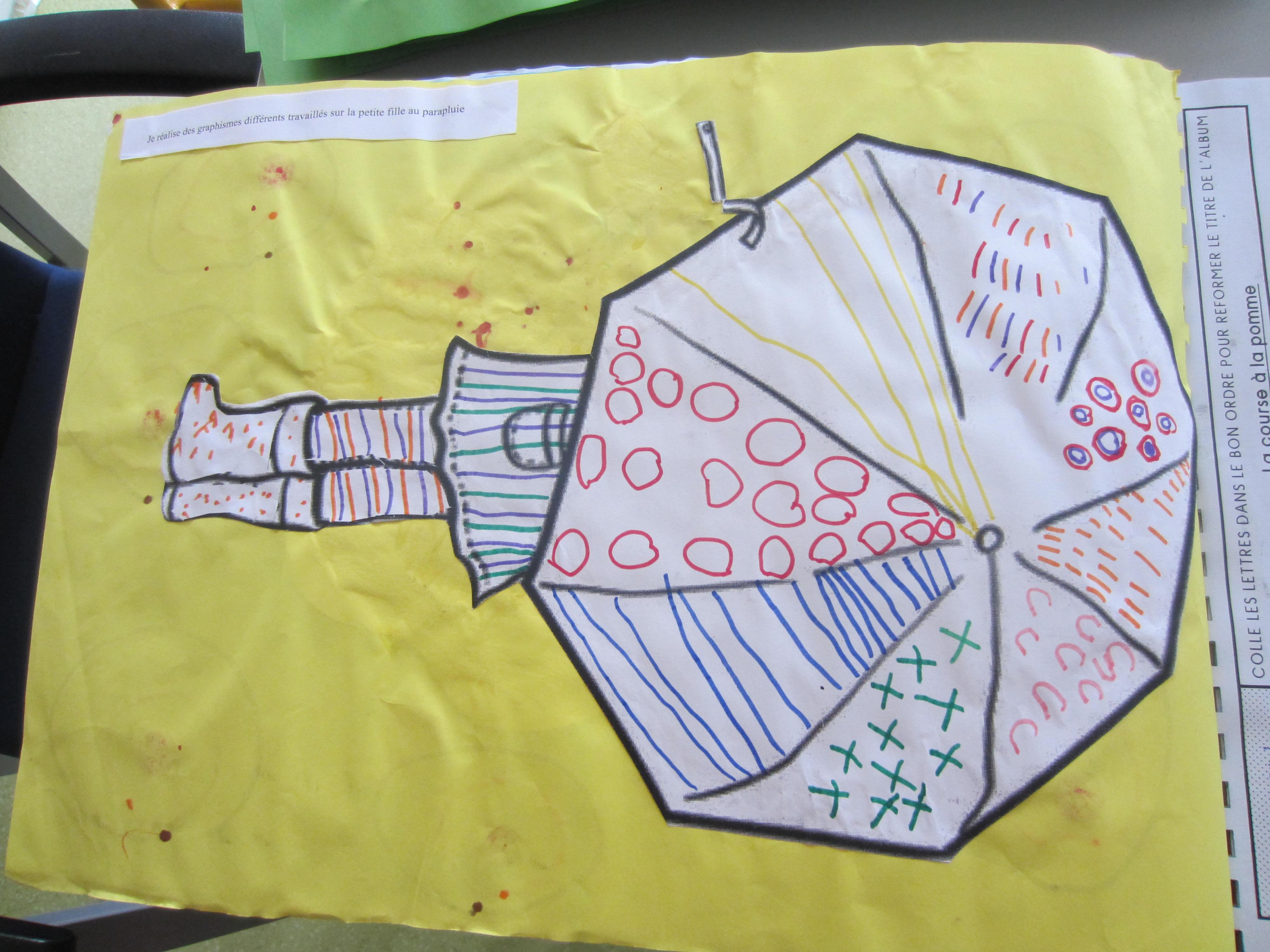 Je décore le parapluie et la silhouette avec des graphismes travaillés.