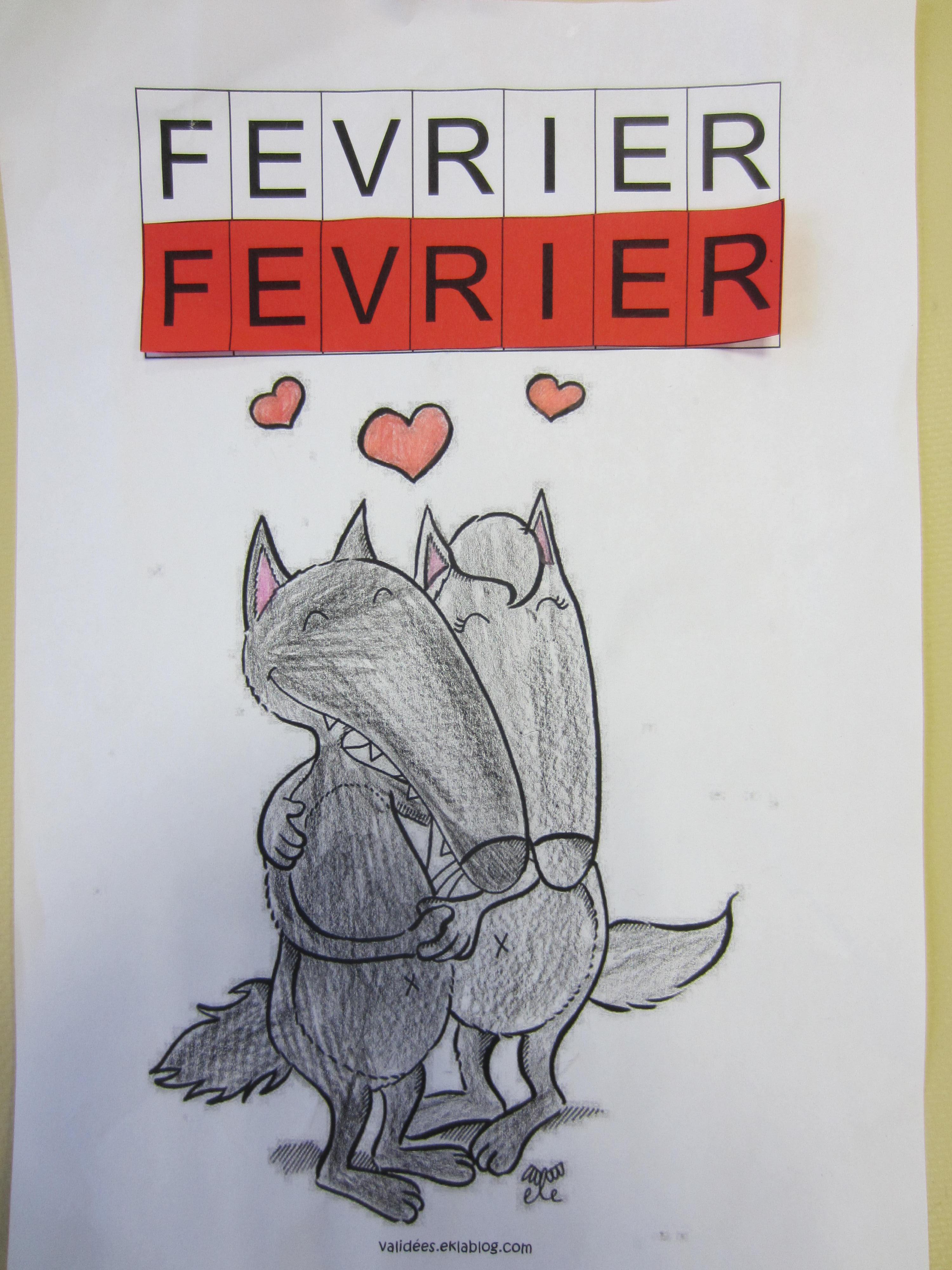 Je reconnais et colle les lettres en capitale d'imprimerie du mois de février.